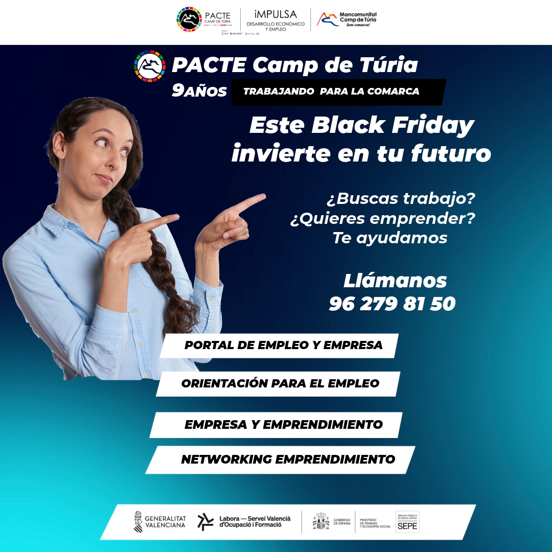 El Pacte Camp de Túria lanza una campaña especial de Black Friday para promocionar sus servicios gratuitos de empleo y…